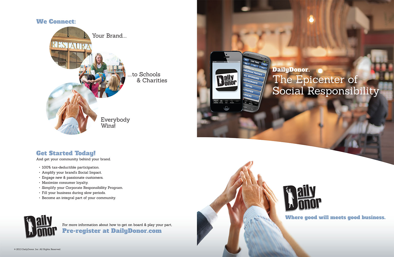 The Ocean Group was honored to get involved at the early stages of this fundraising revolution. We created DailyDonor’s new website. print collateral, video tutorials and infographics with messaging for all sides of the experience–charities, businesses and consumers. Our customized technology also allowed for donations to be processed quickly and accurately, which minimized accounting for all parties. Additional market specific content helped to mobilize a community and create an active and engaged beta test to prove that this concept is not only exciting but it works.