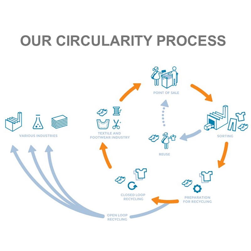 I:CO, short for I:Collect, is a subsidiary of the textile recycling giant SOEX Group. As joined forces, they combine a modern vision of product circularity with a tradition of over 40 years of experience in the collection, sorting, reuse, and recycling of unwanted apparel, footwear, and other textiles. With its mission to eliminate textile waste, I:CO pioneered an innovative retail product take-back system and worldwide infrastructure to keep consumers' pre-loved clothing and shoes in a continuous closed-loop production cycle where these goods can be reprocessed and reused again and again. Working in over 60 countries, I:CO partners with leading fashion brands and retailers to embrace product end-of-use responsibility and make it convenient and rewarding for consumers to give their items new life.